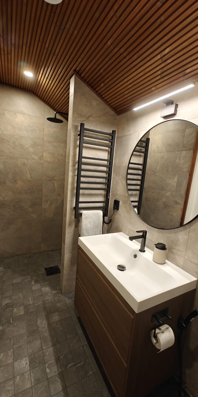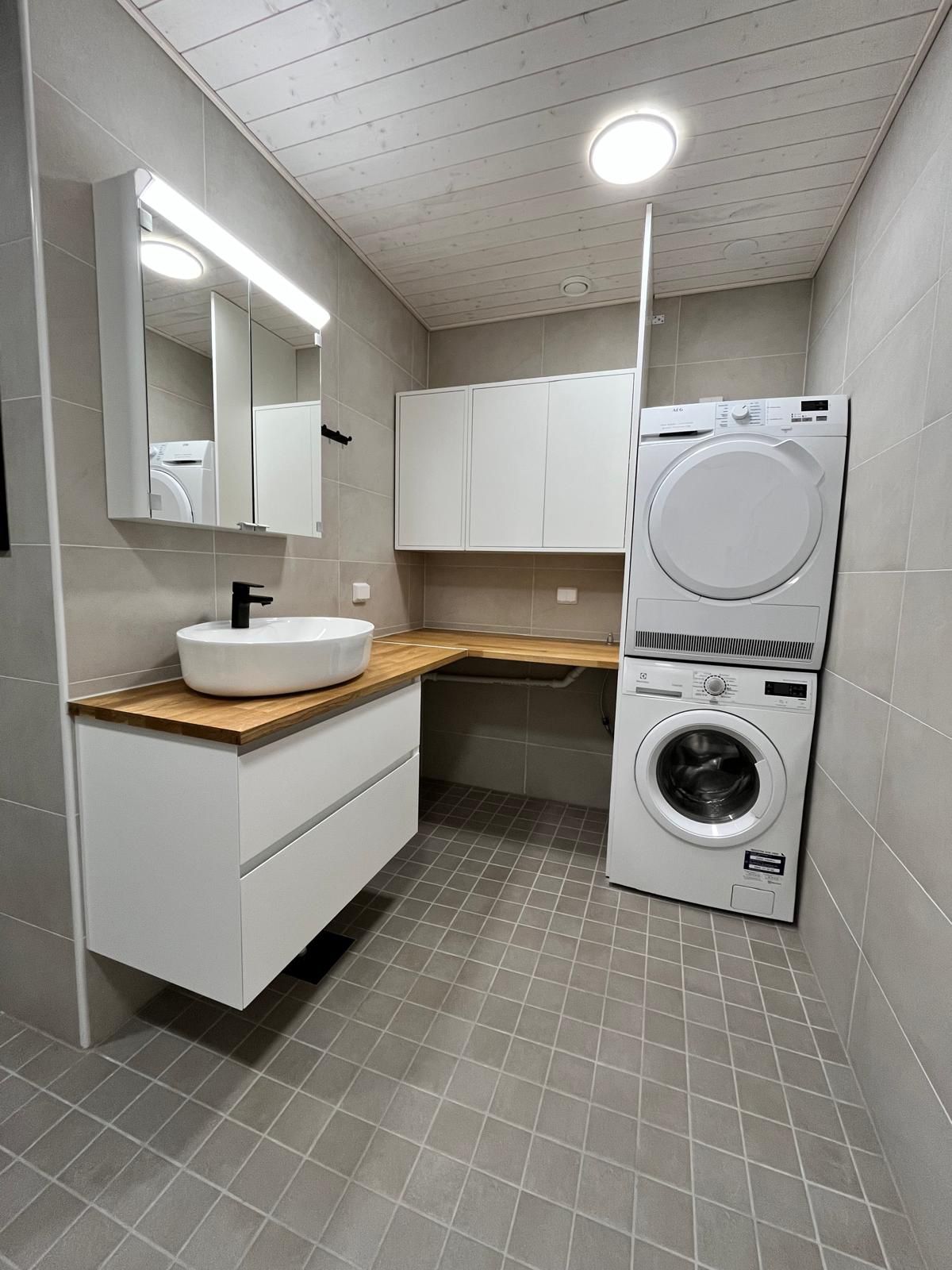 Olemme erittäin tyytyväisiä työn laatuun. Tuomaksen kanssa oli helppo sopia asioista. Hänellä on myös hyvät verkostot, joten meidän ei tarvinnut sopia asioita esim. sähköasentajan tai putkimiehen kanssa vaan hän hoiti heidän kanssaan asiat, kun työt olivat tietyssä vaiheessa. Myös valvojan käynnit Tuomas sopi valvojan kanssa. Remonttiaikataulu piti, vaikka pieniä yllätyksiä tuli, kun kylpyhuonetta purettiin.